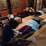 生姜湿布で至福の時間を過ごした後は、本行寺の長谷川住職の御兄弟が集まり、雅楽の演奏がありました。私も目の前で雅楽の演奏を聞くのは初めてだったのですが、神聖なる雅の世界に引き込まれるような感じを受けました。皆さん、雅楽の音色の響きによって、さらに心も体もパワーアップできたようです。