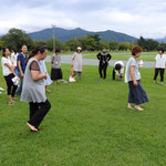 座学の後は、近くの公園に行き、アーシングの時間を設けました。裸足で大地の上を歩くと、何とも言えない心地よい感じがします。雨が降った後で草が湿っていたのですが、湿り気があった方がアーシング効果が上がります。20分程度のアーシングでしたが効果は抜群で、体に溜まった静電気が抜け、大地からパワーを充電できてスッキリしました。